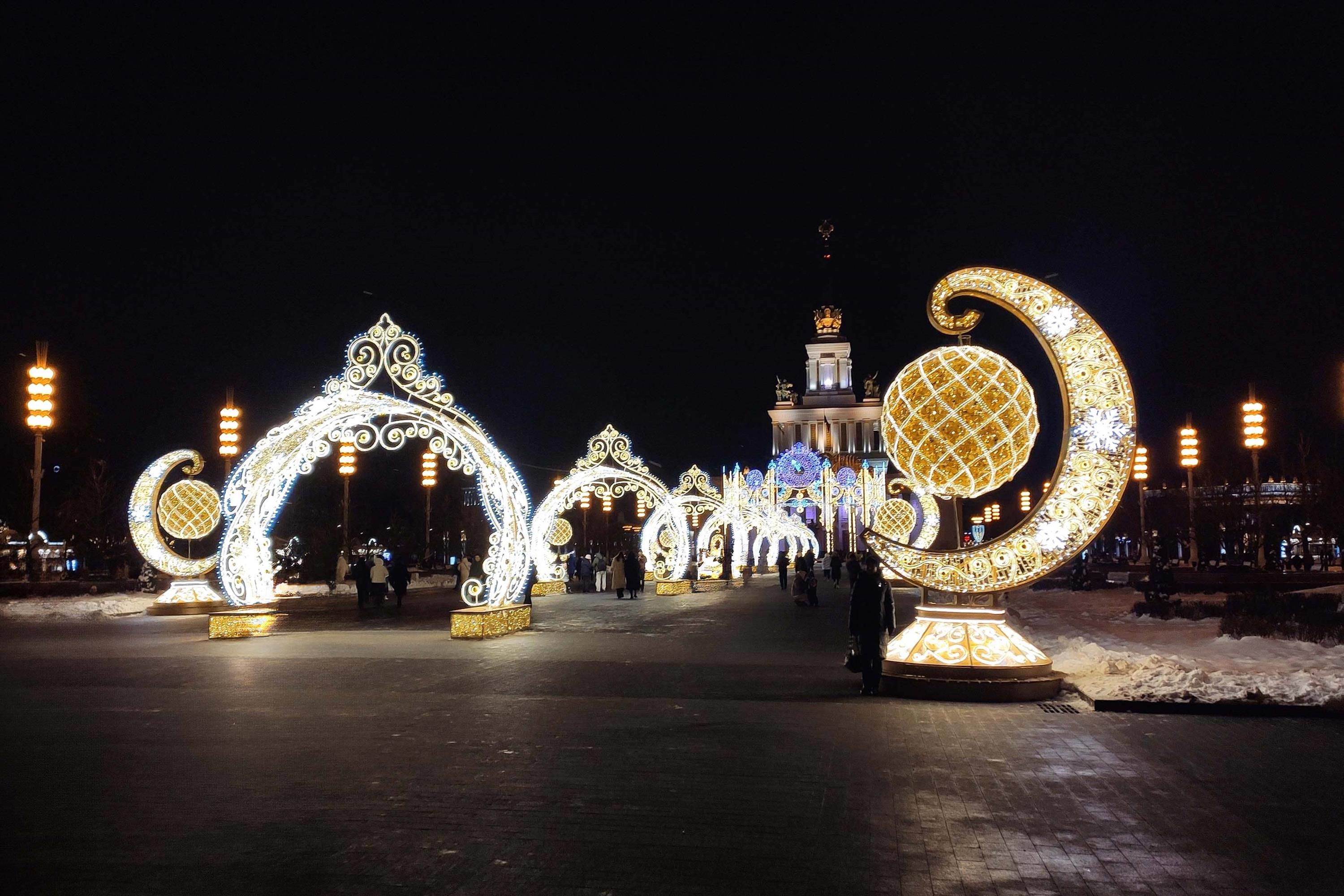 Праздничное оформление города. С конца ноября и до середины января Москва сияет иллюминацией. Более 30 миллионов световых элементов украшают центральные улицы, парки и площади. Тверская улица, Никольская, бульварное кольцо — каждый маршрут превращается в прогулку по городу огней.